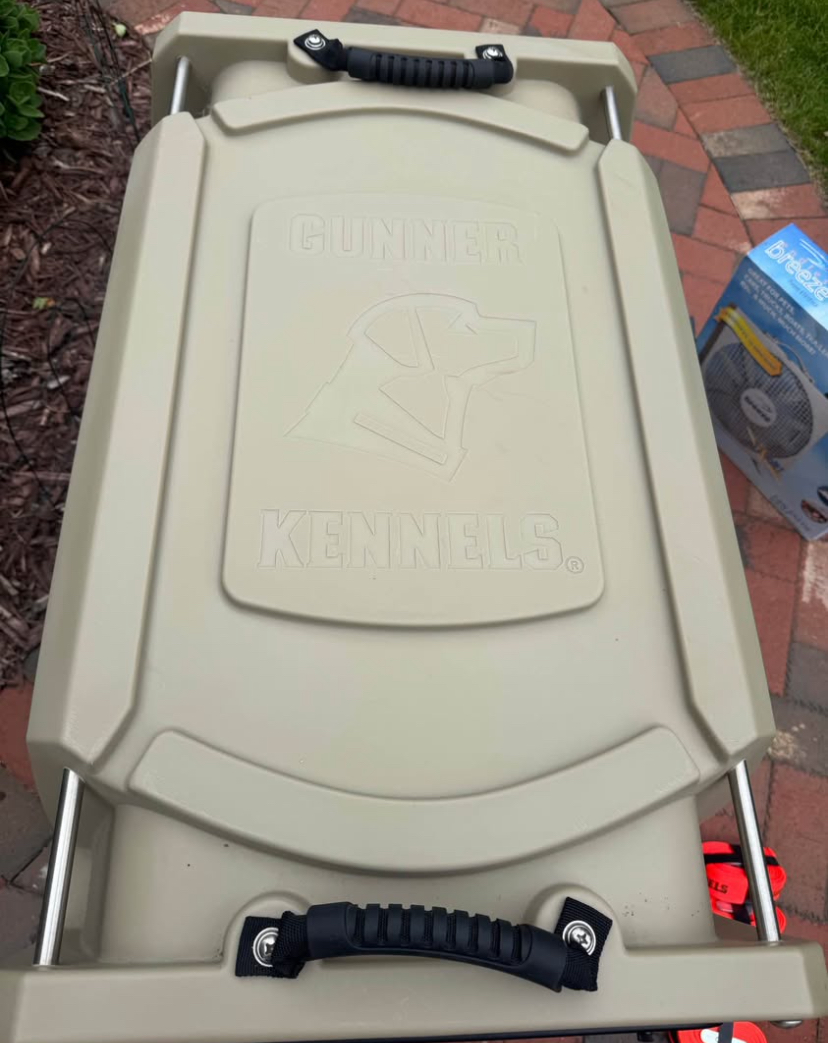 Gunner intermediate kennel- my pup outgrew it. Comes with cold weather door cover, all weather kit, performance pad, ortho pad, water bowl, bird dog products fan kit, lockdown kit. Purchased this past summer.